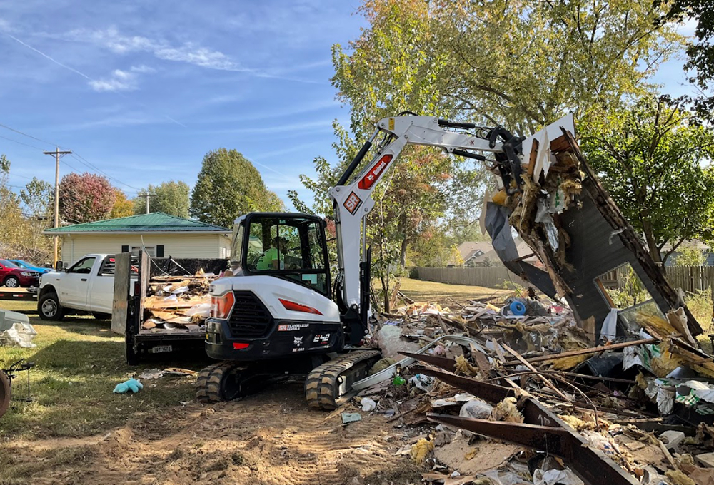We handle debris removal using a combination of dump trailers and partner dumpsters to ensure efficiency. Recyclable materials, such as metal, are salvaged and sent to recycling facilities, while non-recyclable waste is taken to EPA-approved disposal sites, ensuring compliance with environmental standards.